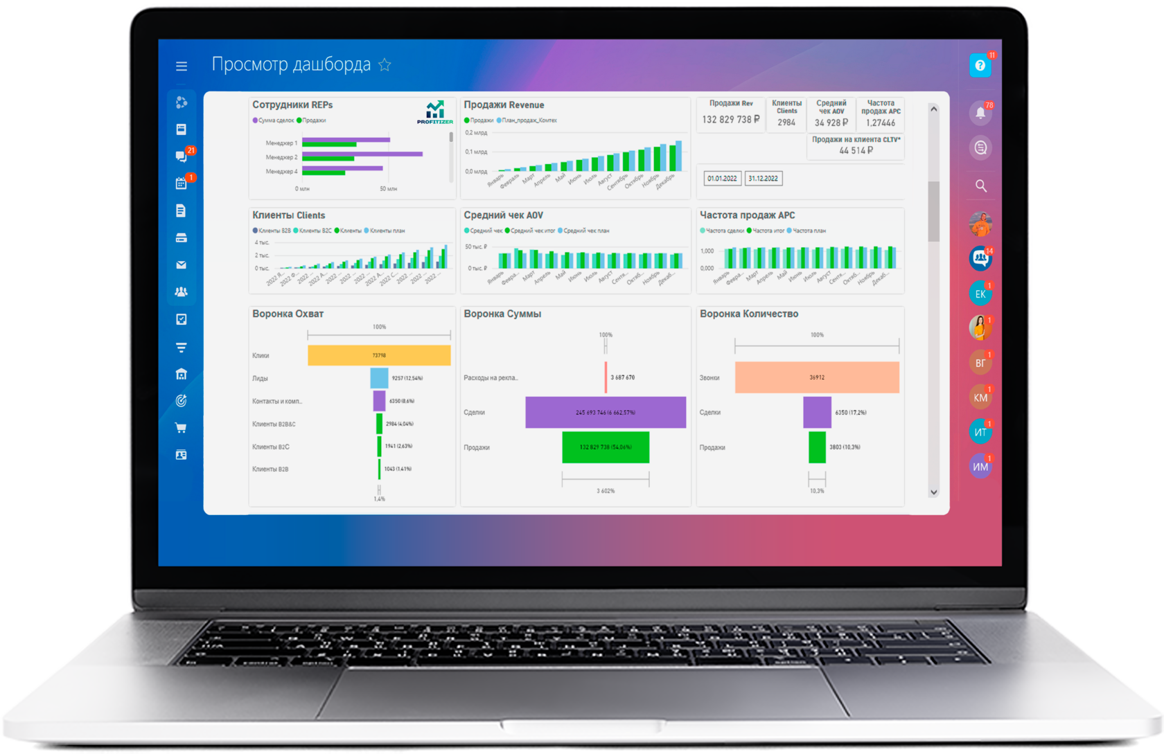 Отслеживать 24 готовых KPI по каждому сотруднику отдела продаж