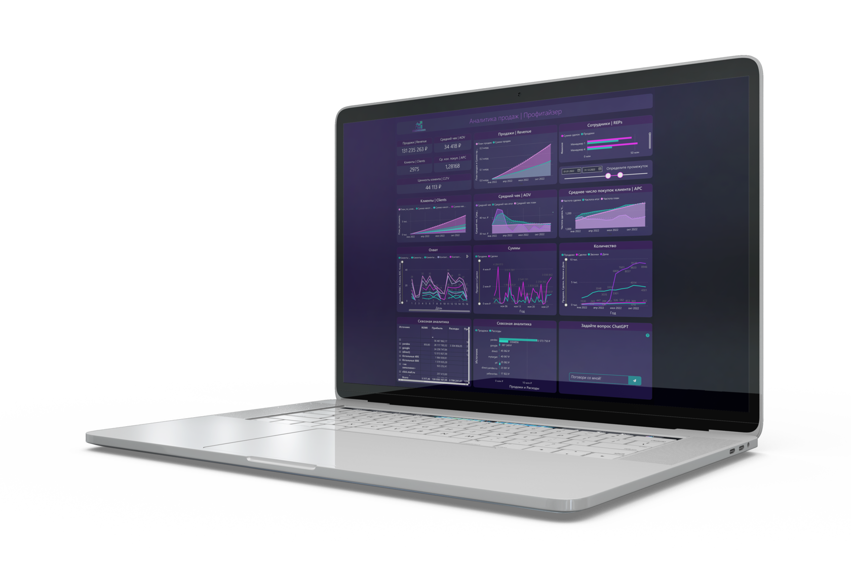 Контролировать важные метрики отдела продаж и по каждому сотруднику на одном экране